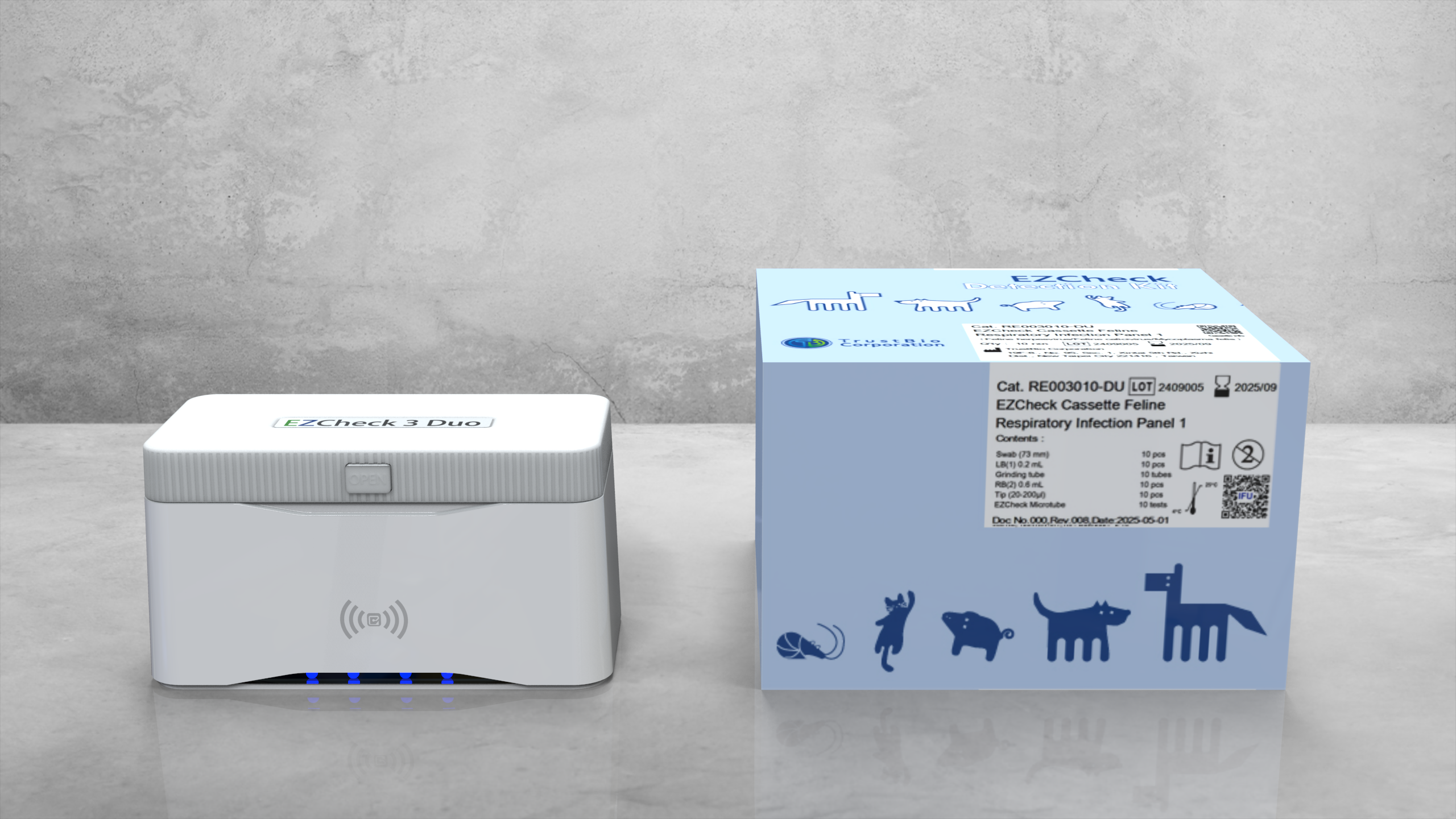 EZCheck 3 Duo is designed to work with TrustBio’s proprietary lyophilized reagent panels, available for various veterinary applications: