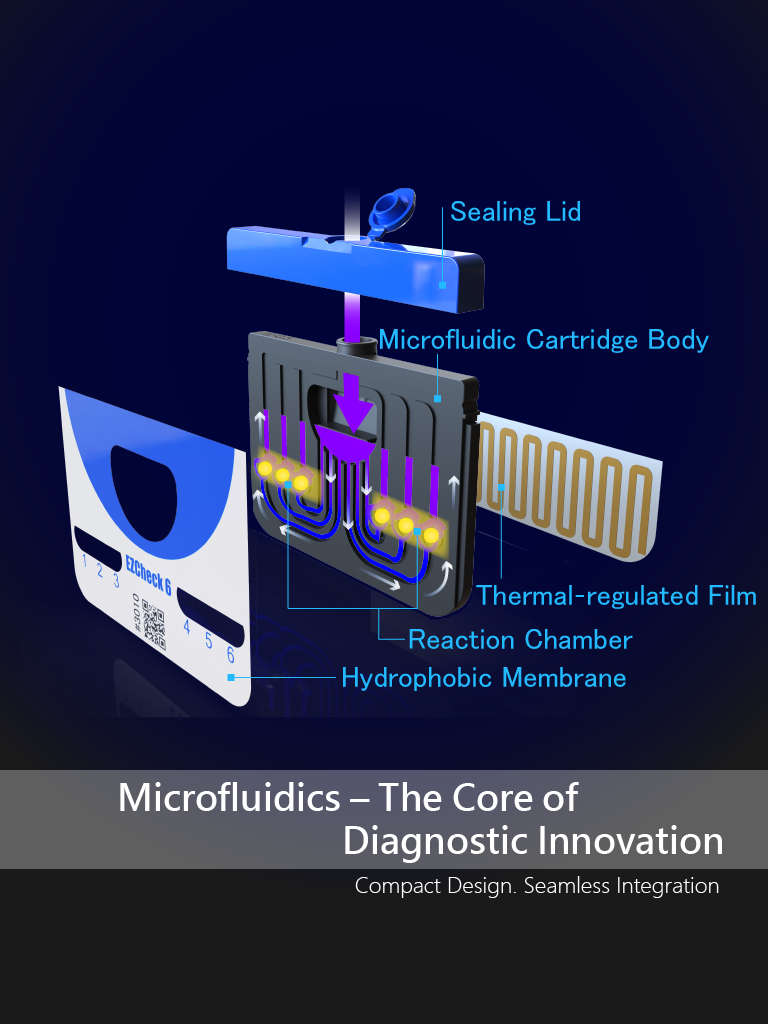 EZCheck 6 is a state-of-the-art nucleic acid detecion platform developed specifically for veterinary diagnostics. Combining patented microfluidic cartridge technology and eLAMP (enhanced Loop-Mediated Isothermal Amplification), EZCheck 6 delivers fast and reliable results, enabling veterinarians to make informed decisions in real time. While traditional qPCR tests remain the gold standard for laboratory-based molecular diagnostics, EZCheck 6 bridges the gap by offering comparable accuracy with the speed and convenience required for point-of-care settings.